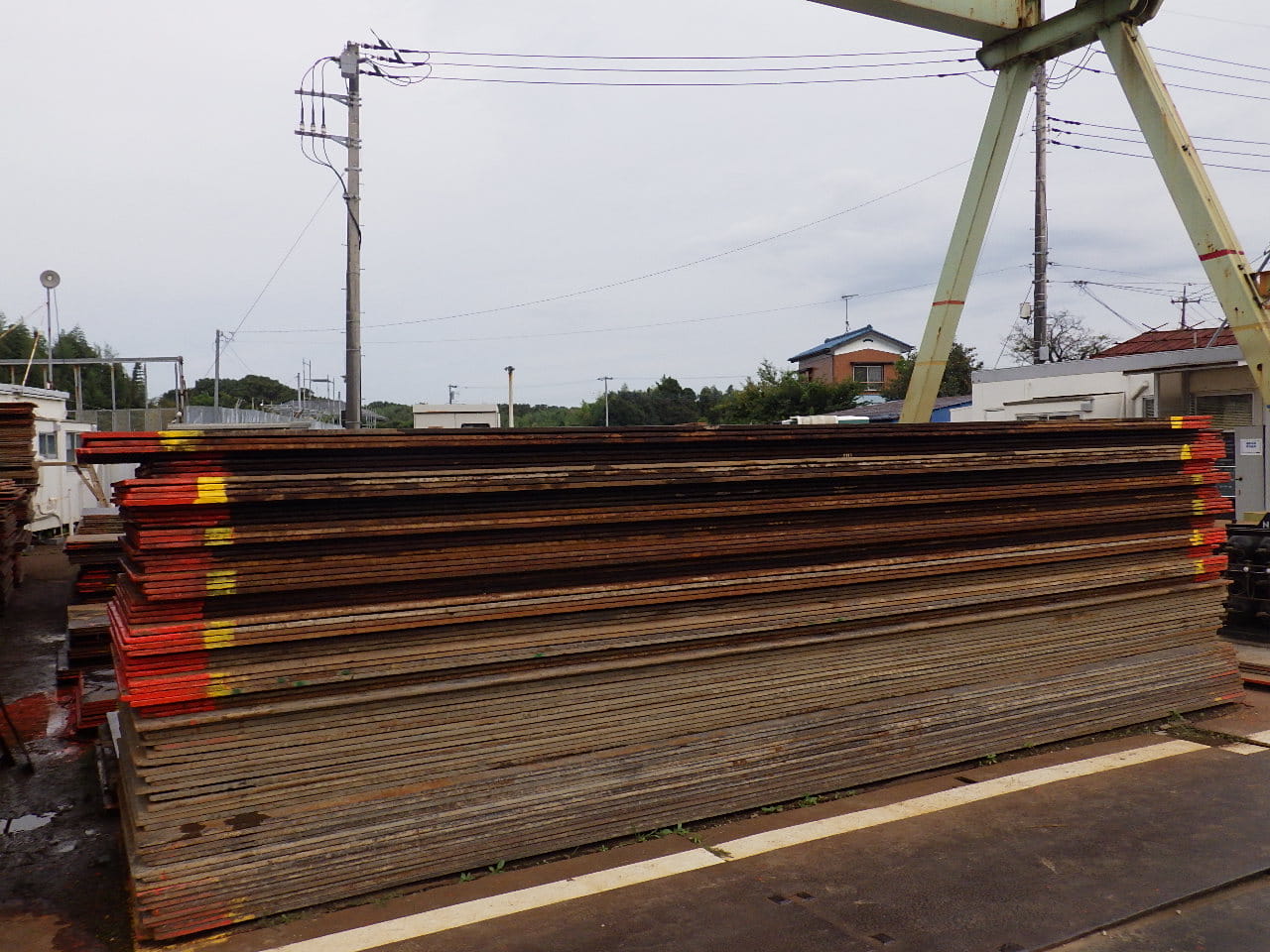 敷鉄板はマンションの建設現場や石油プラントの構内工事などで使用されています。