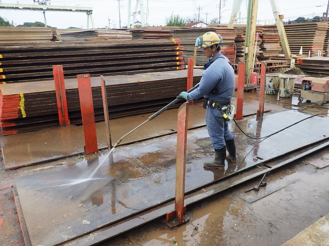 八千代営業所では建設現場等に必要不可欠な敷鉄板のリース・保管・整備をおこなっております。